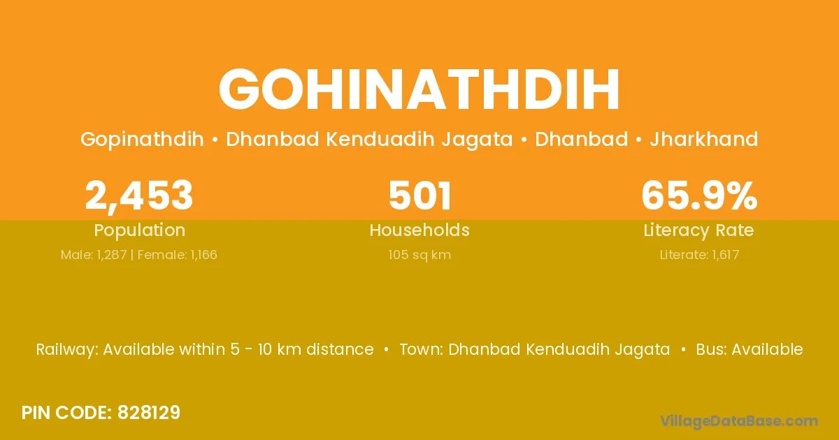 Dhanbad Kenduadih Jagata is the nearest town to Gohinathdih village for major economic activities
