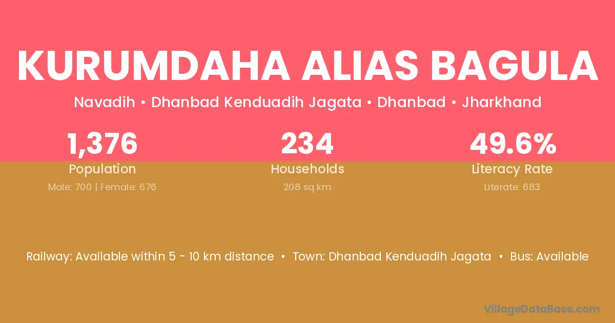 Kurumdaha Alias Bagula village has a total population of 1,376 people, of which 700 are males and 676 are females.