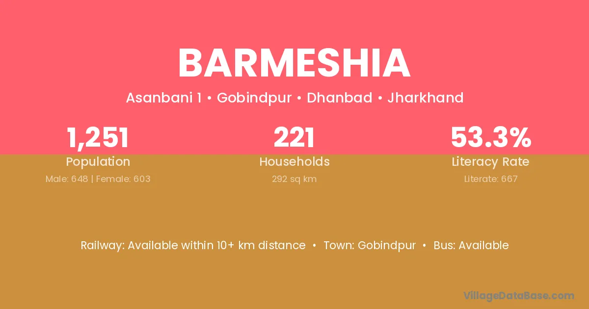 Barmeshia village is located in the Gobindpur Subdivision of the Dhanbad district in Jharkhand .