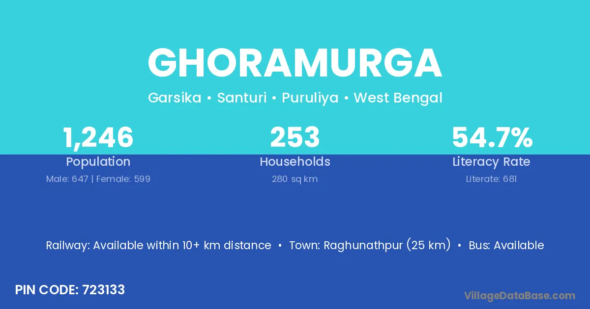 Gobindpur is the nearest town to Ghoramurga village for major economic activities