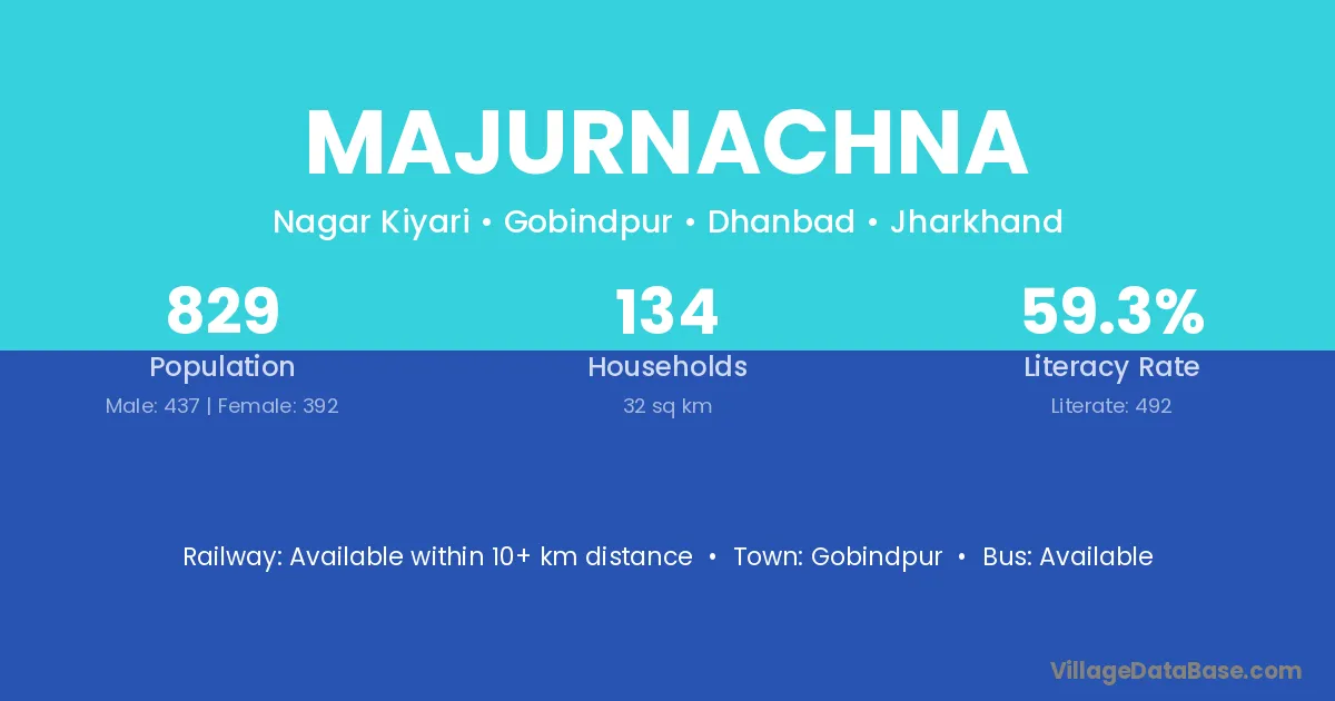 Majurnachna village has a total population of 829 people, of which 437 are males and 392 are females.