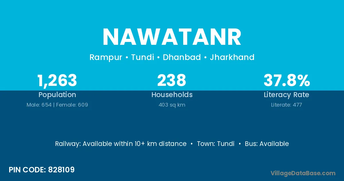 Dhanbad is the nearest town to Nawatanr village for major economic activities