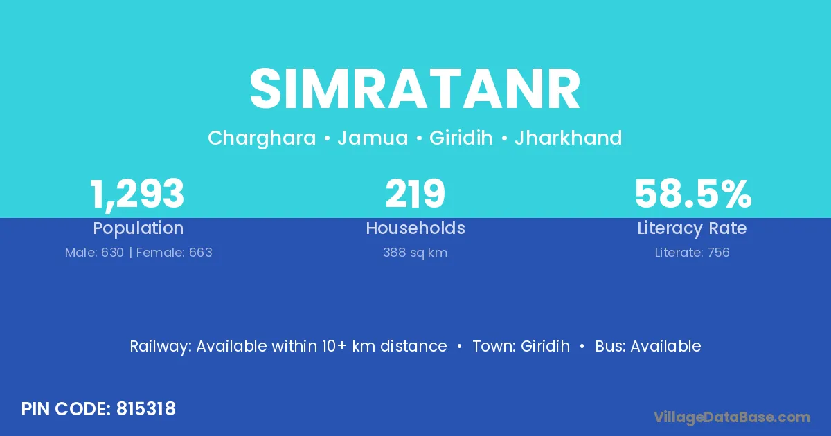 The literacy rate of Simratanr village is 47.15%. Male literacy stands at 67.48% and female literacy at 29.29%.
