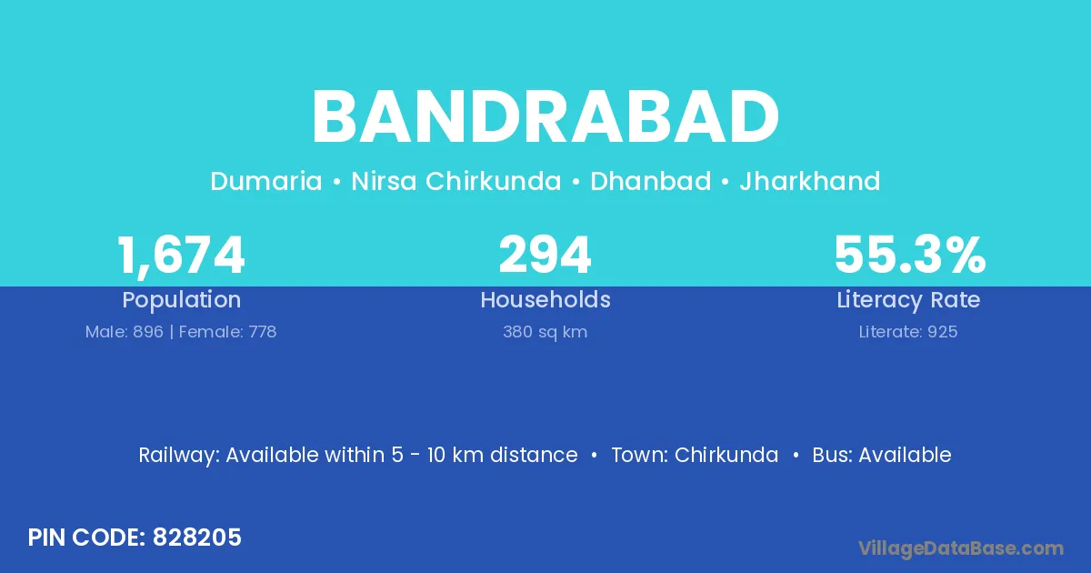 Chirkunda is the nearest town to Bandrabad village for major economic activities