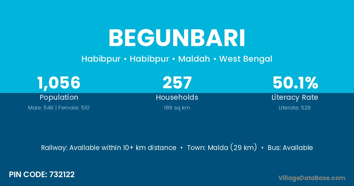Begunbari village has a total population of 263 people, of which 136 are males and 127 are females.