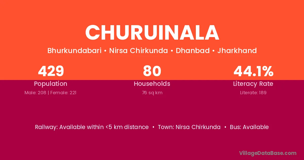 Nirsa Chirkunda is the nearest town to Churuinala village for major economic activities