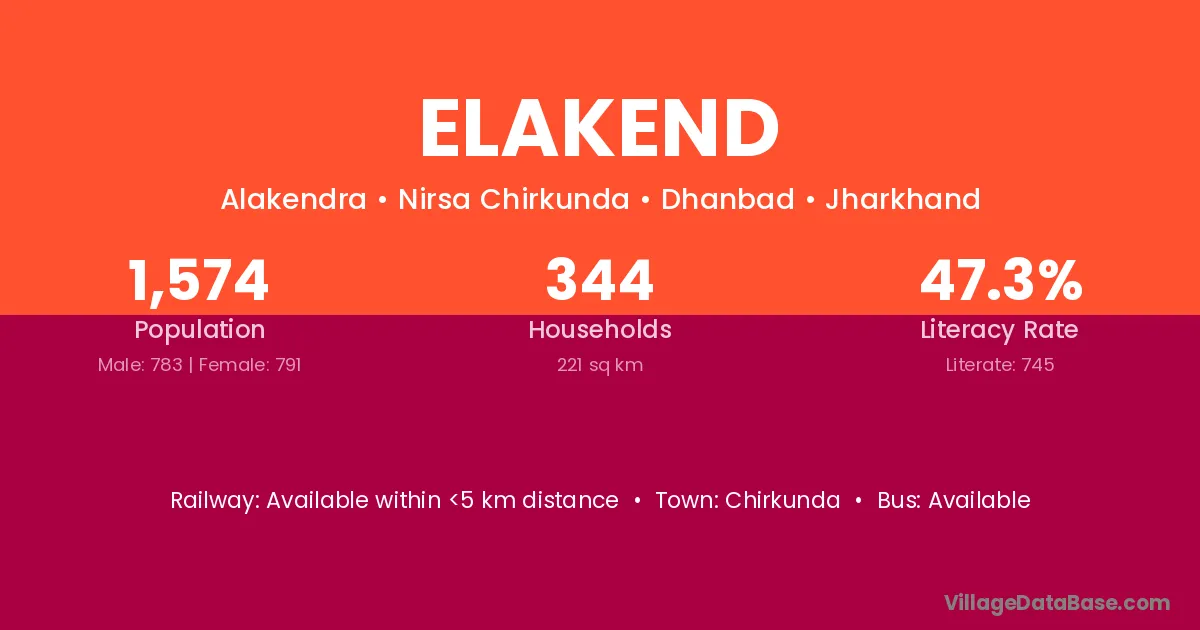 Chirkunda is the nearest town to Elakend village for major economic activities
