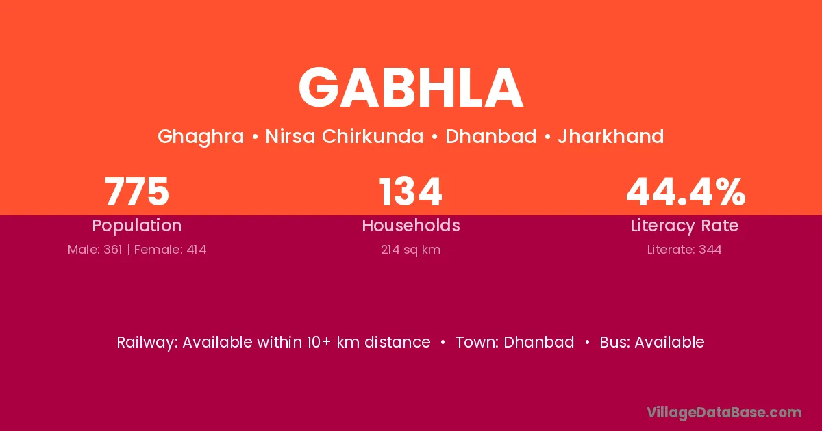 Dhanbad is the nearest town to Gabhla village for major economic activities