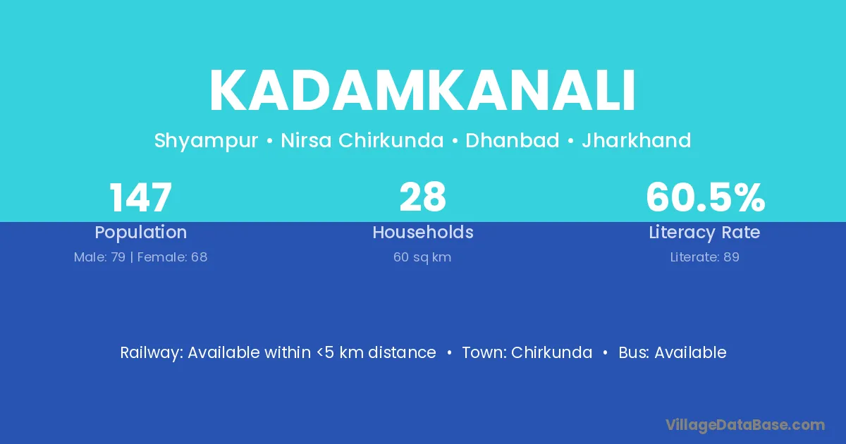 Chirkunda is the nearest town to Kadamkanali village for major economic activities
