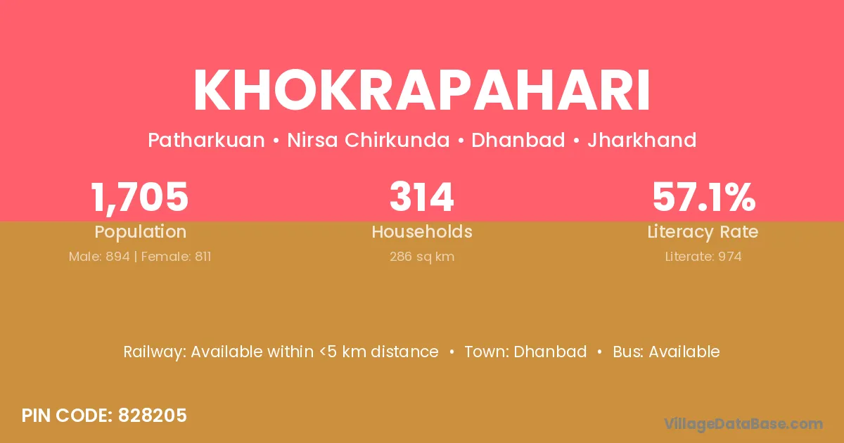Dhanbad is the nearest town to Khokrapahari village for major economic activities