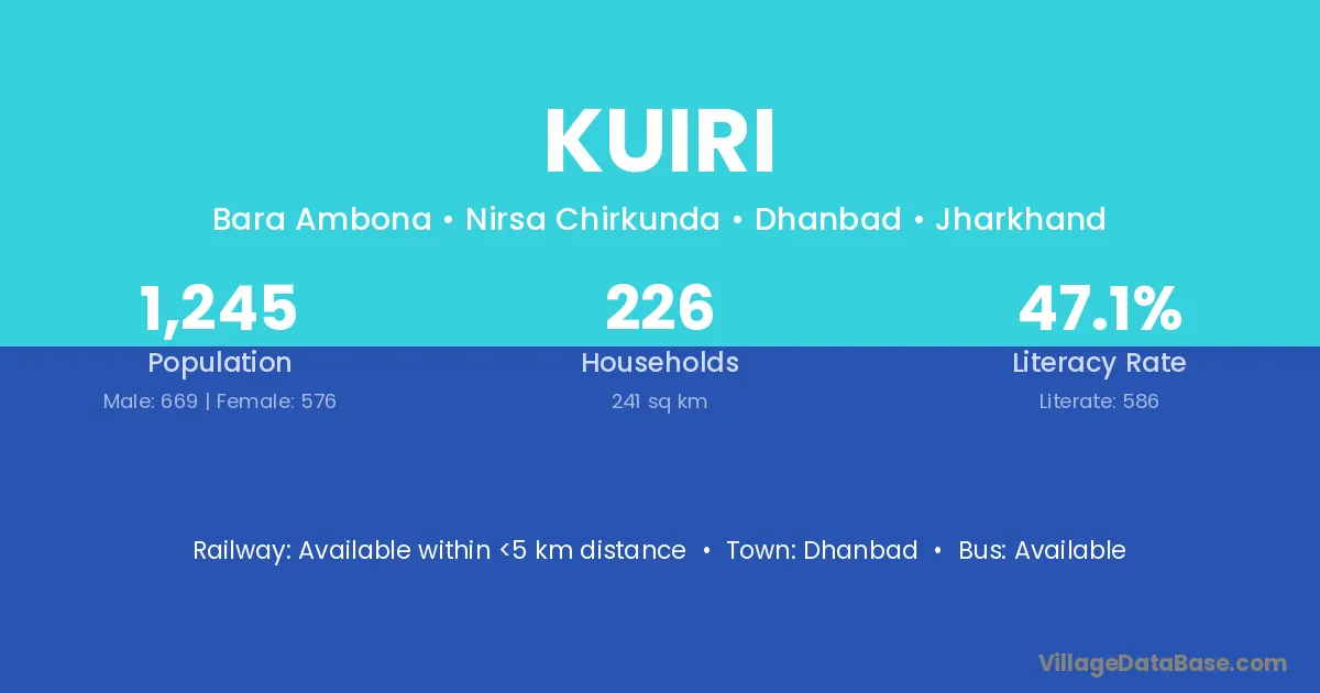 Dhanbad is the nearest town to Kuiri village for major economic activities