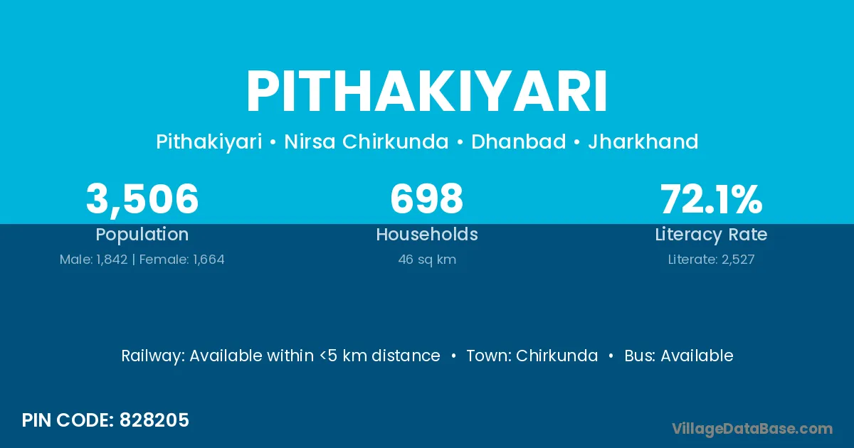 Chirkunda is the nearest town to Pithakiyari village for major economic activities