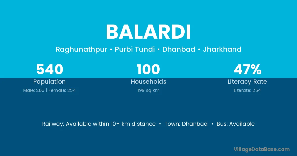 Dhanbad is the nearest town to Balardi village for major economic activities