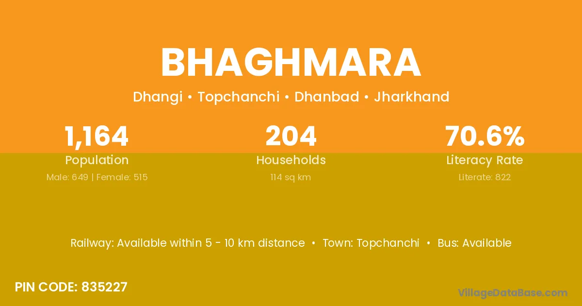 Bhaghmara village has a total population of 1,164 people, of which 649 are males and 515 are females.