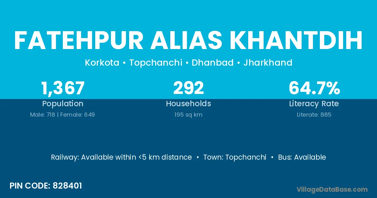Fatehpur Alias Khantdih village has a total population of 1,367 people, of which 718 are males and 649 are females.