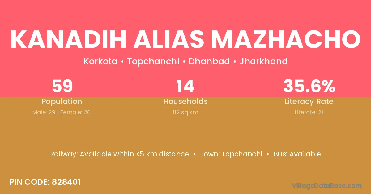 Kanadih Alias Mazhacho village has a total population of 59 people, of which 29 are males and 30 are females.