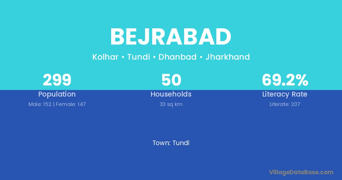 Bejrabad village has a total population of 299 people, of which 152 are males and 147 are females.