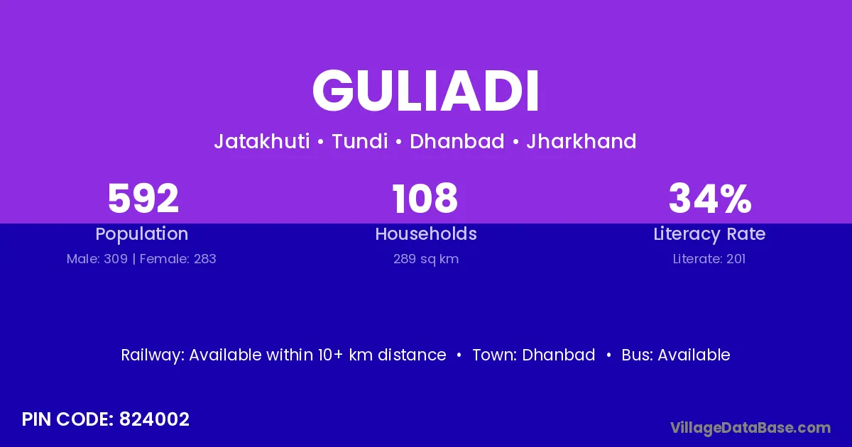 Dhanbad is the nearest town to Guliadi village for major economic activities
