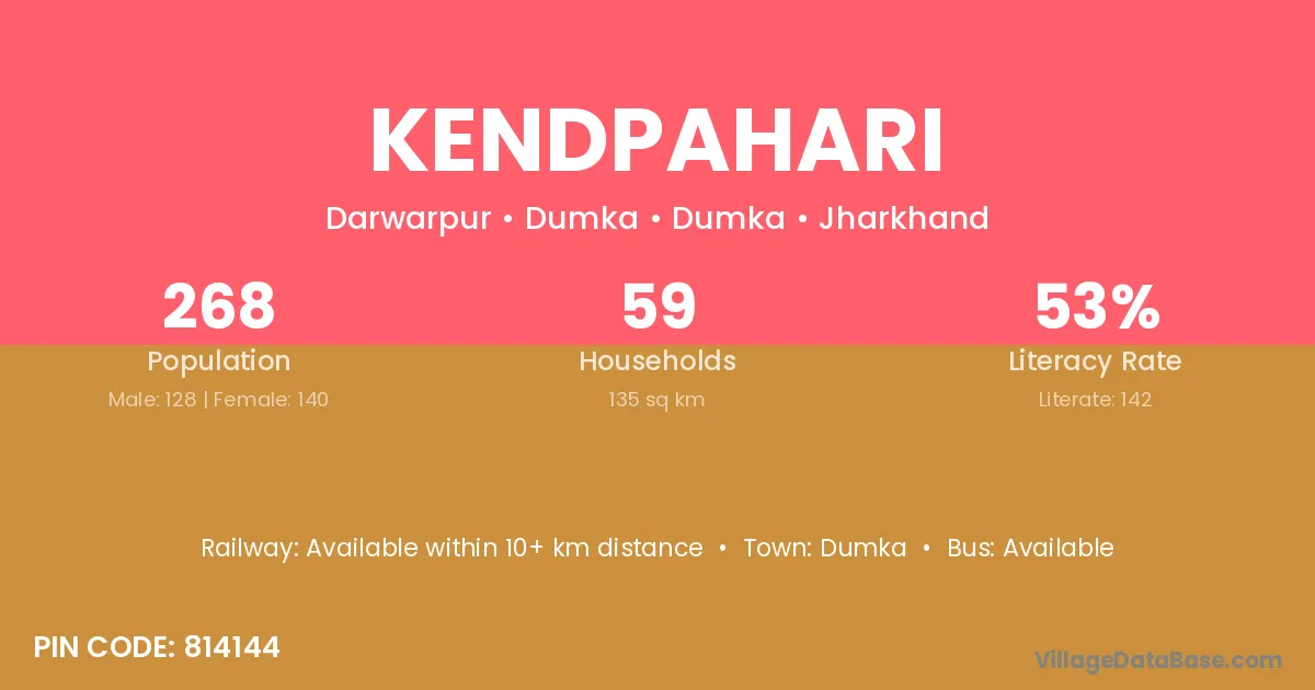 Dumka is the nearest town to Kendpahari village for major economic activities
