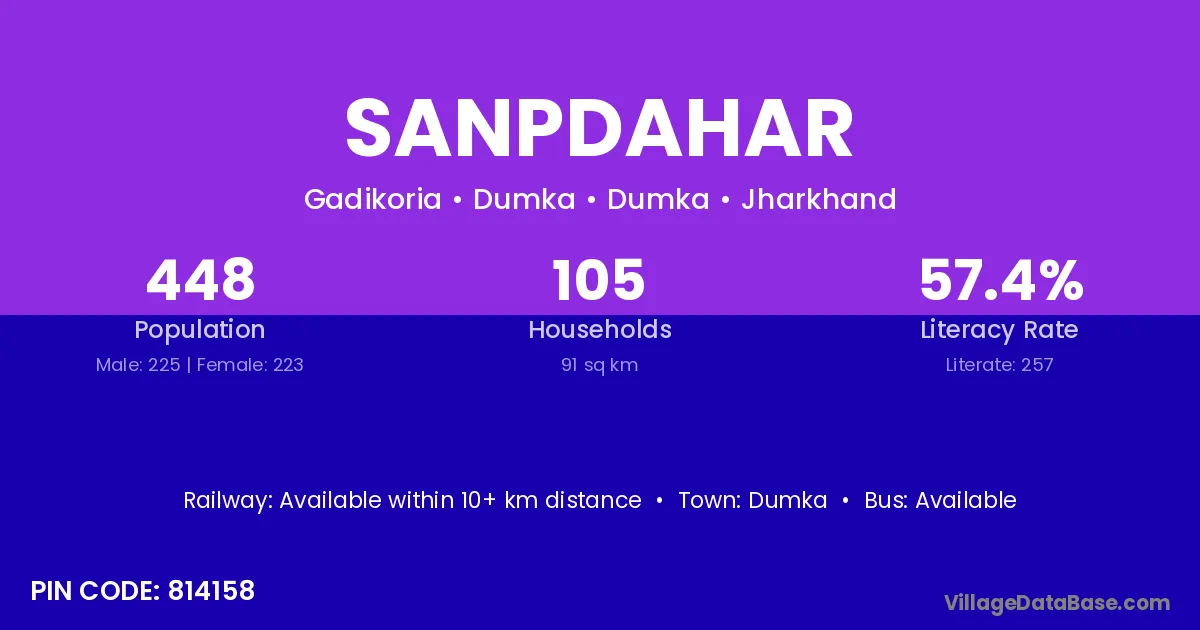 Sanpdahar village has a total population of 448 people, of which 225 are males and 223 are females.
