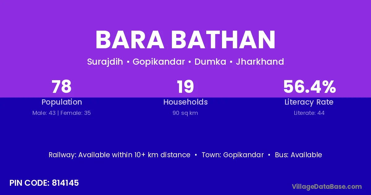 Bara Bathan village has a total population of 78 people, of which 43 are males and 35 are females.