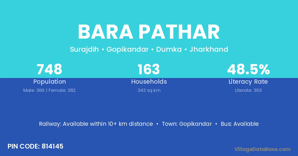 Bara Pathar village has a total population of 748 people, of which 366 are males and 382 are females.