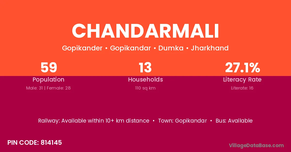 Chandarmali village has a total population of 59 people, of which 31 are males and 28 are females.