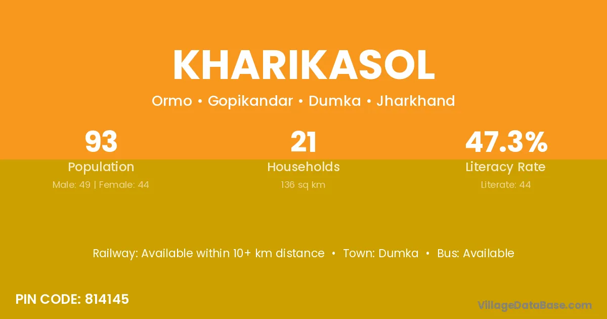 According to Census 2011 information, the village code of Kharikasol village is 814145.