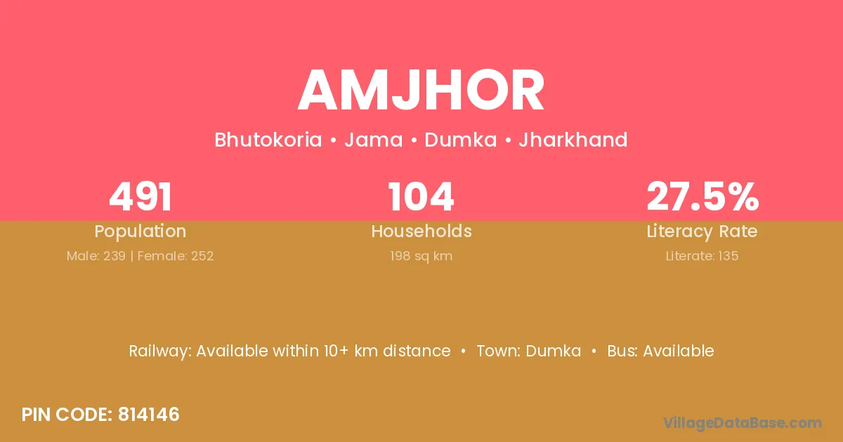 Amjhor village has a total population of 491 people, of which 239 are males and 252 are females.