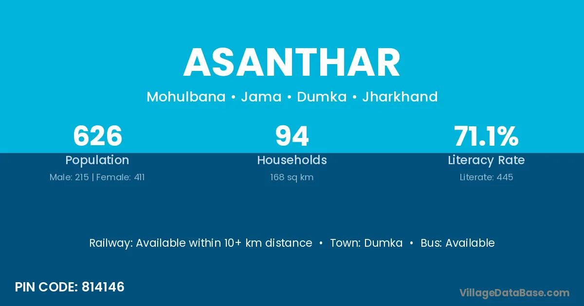 Dumka is the nearest town to Asanthar village for major economic activities