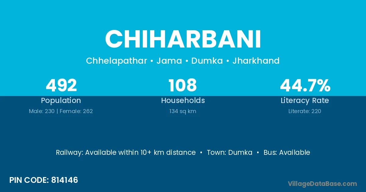 Dumka is the nearest town to Chiharbani village for major economic activities