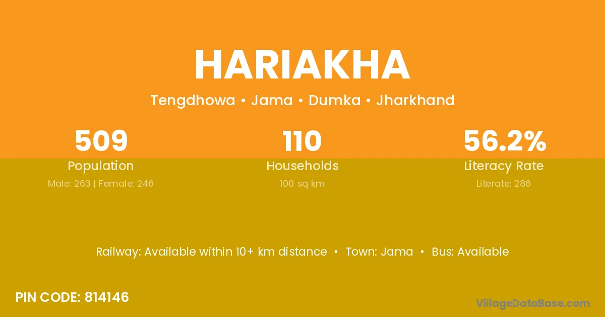 Hariakha village is located in the Jama Subdivision of the Dumka district in Jharkhand .