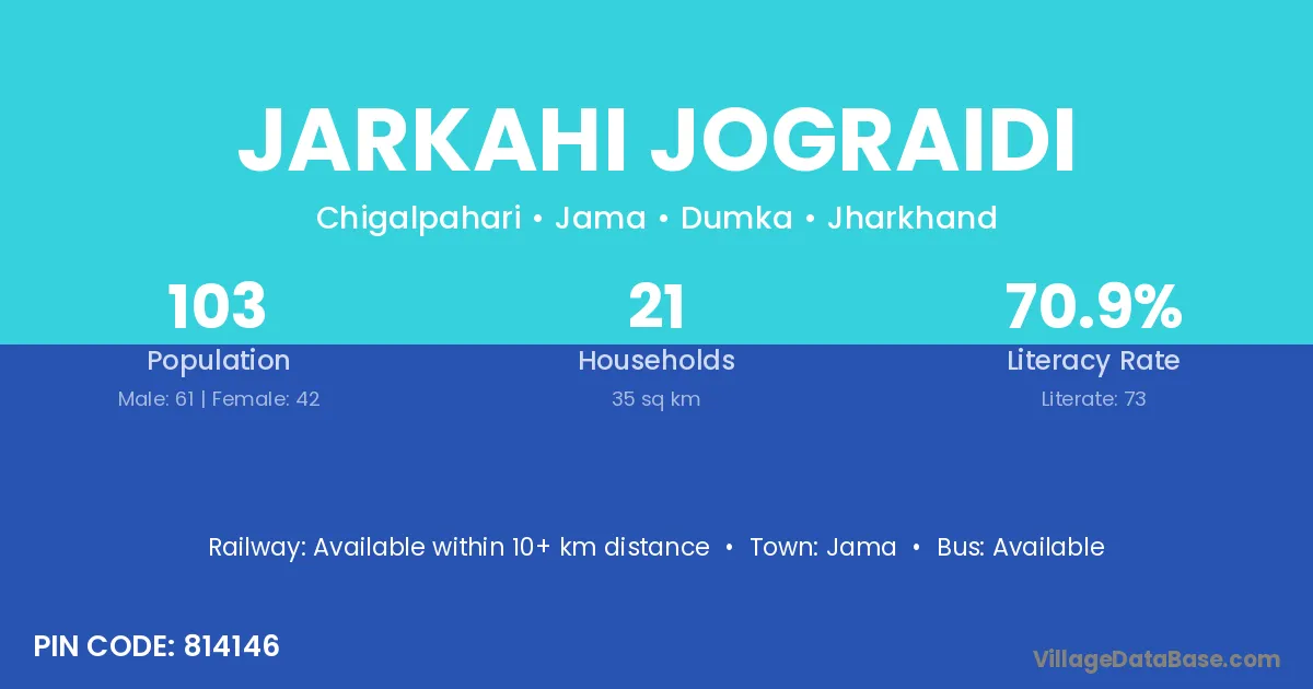 Jarkahi Jograidi village has a total population of 103 people, of which 61 are males and 42 are females.