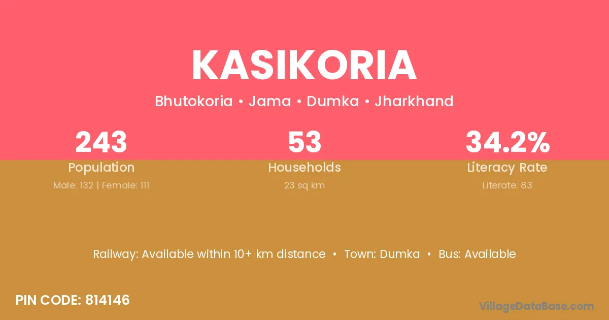 Dumka is the nearest town to Kasikoria village for major economic activities
