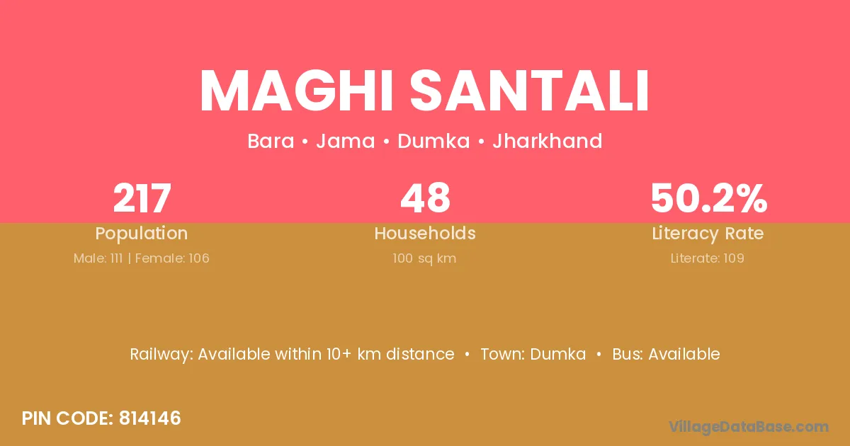 Maghi Santali village has a total population of 217 people, of which 111 are males and 106 are females.