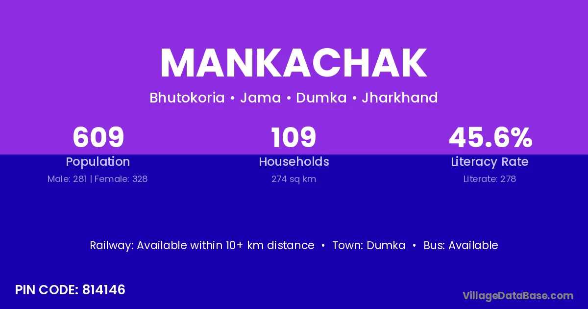 Dumka is the nearest town to Mankachak village for major economic activities