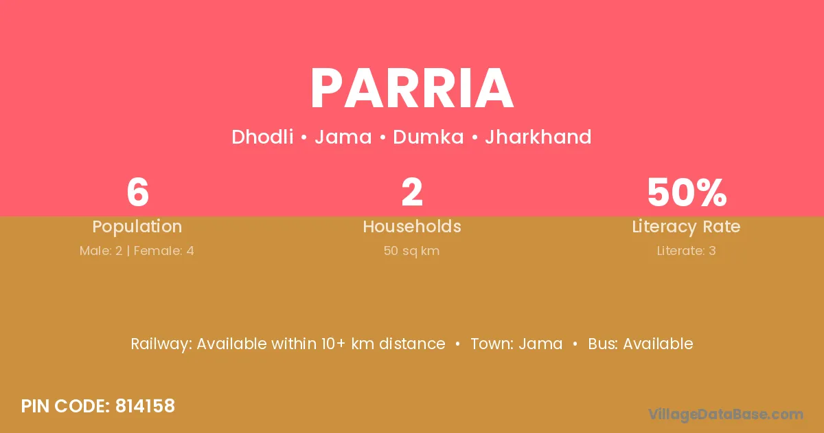 Parria village has a total population of 6 people, of which 2 are males and 4 are females.