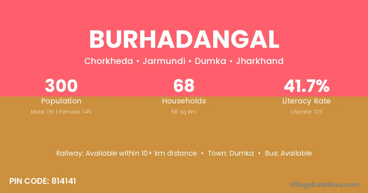 Burhadangal village has a total population of 300 people, of which 151 are males and 149 are females.