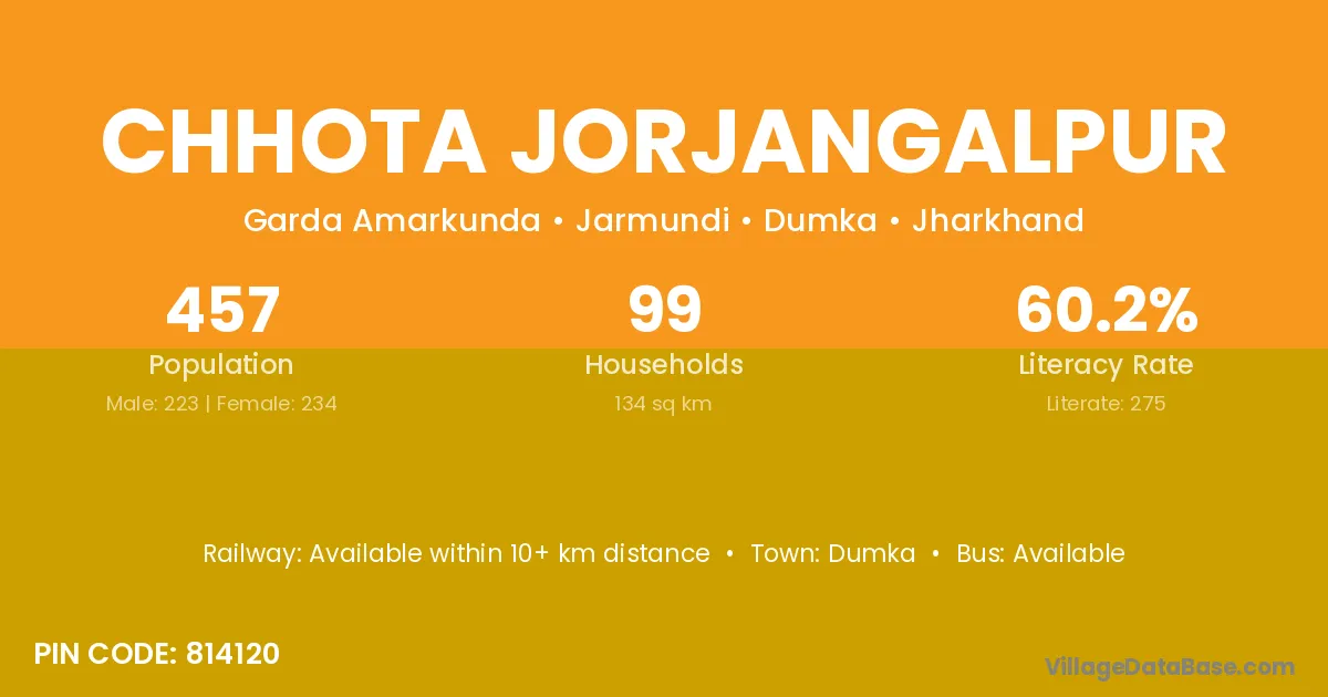 Chhota Jorjangalpur village has a total population of 457 people, of which 223 are males and 234 are females.