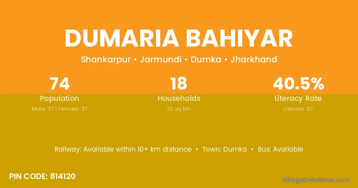 Dumka is the nearest town to Dumaria Bahiyar village for major economic activities