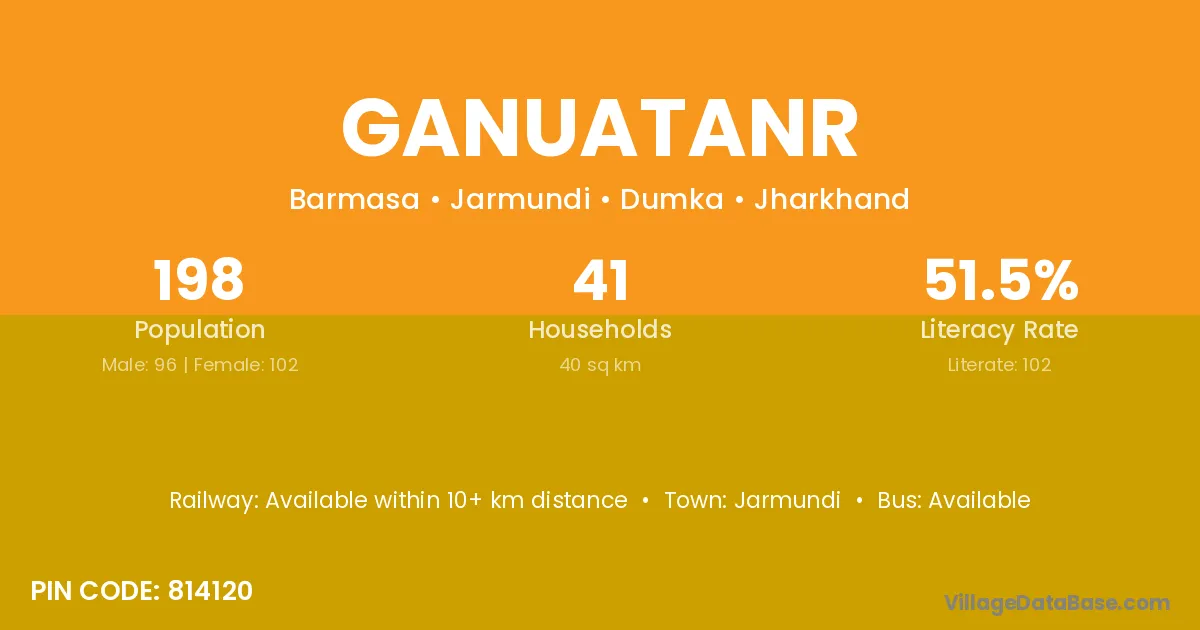 Ganuatanr village has a total population of 198 people, of which 96 are males and 102 are females.
