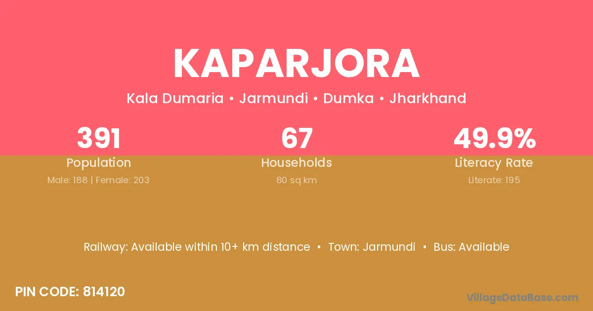 Kaparjora village has a total population of 391 people, of which 188 are males and 203 are females.