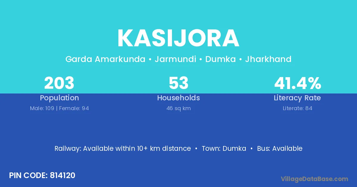 Dumka is the nearest town to Kasijora village for major economic activities