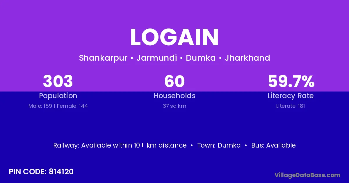 Dumka is the nearest town to Logain village for major economic activities