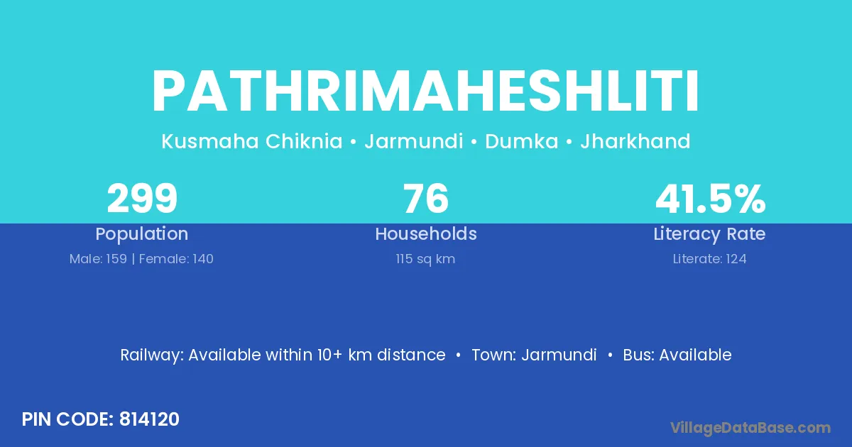 Pathrimaheshliti village has a total population of 299 people, of which 159 are males and 140 are females.