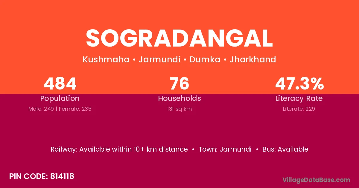 Sogradangal village has a total population of 484 people, of which 249 are males and 235 are females.
