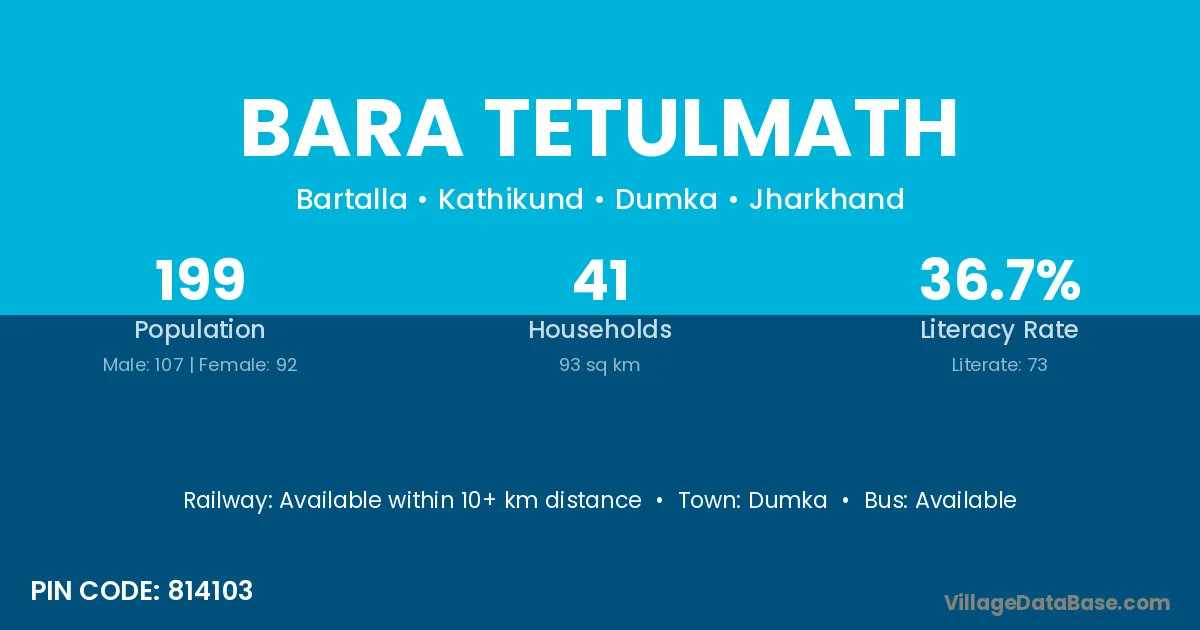 Bara Tetulmath village has a total population of 199 people, of which 107 are males and 92 are females.