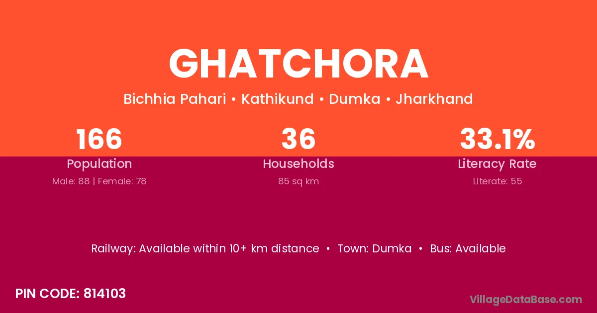 Dumka is the nearest town to Ghatchora village for major economic activities