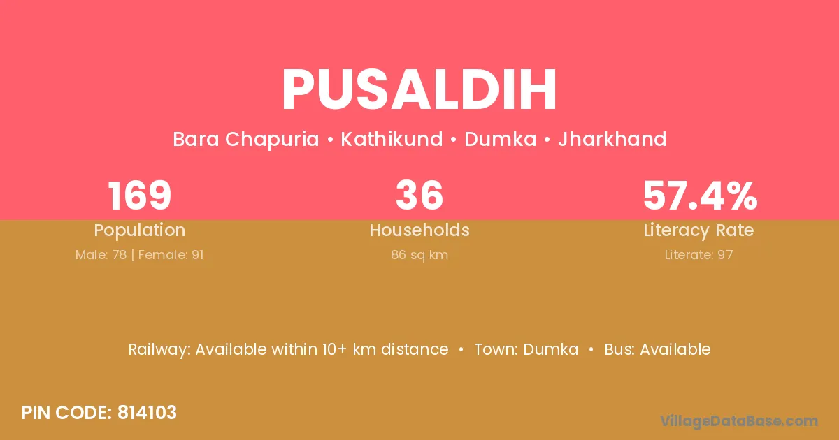 Dumka is the nearest town to Pusaldih village for major economic activities