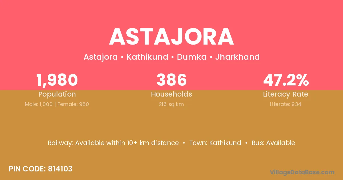 According to Census 2011 information, the village code of Astajora village is 814146.